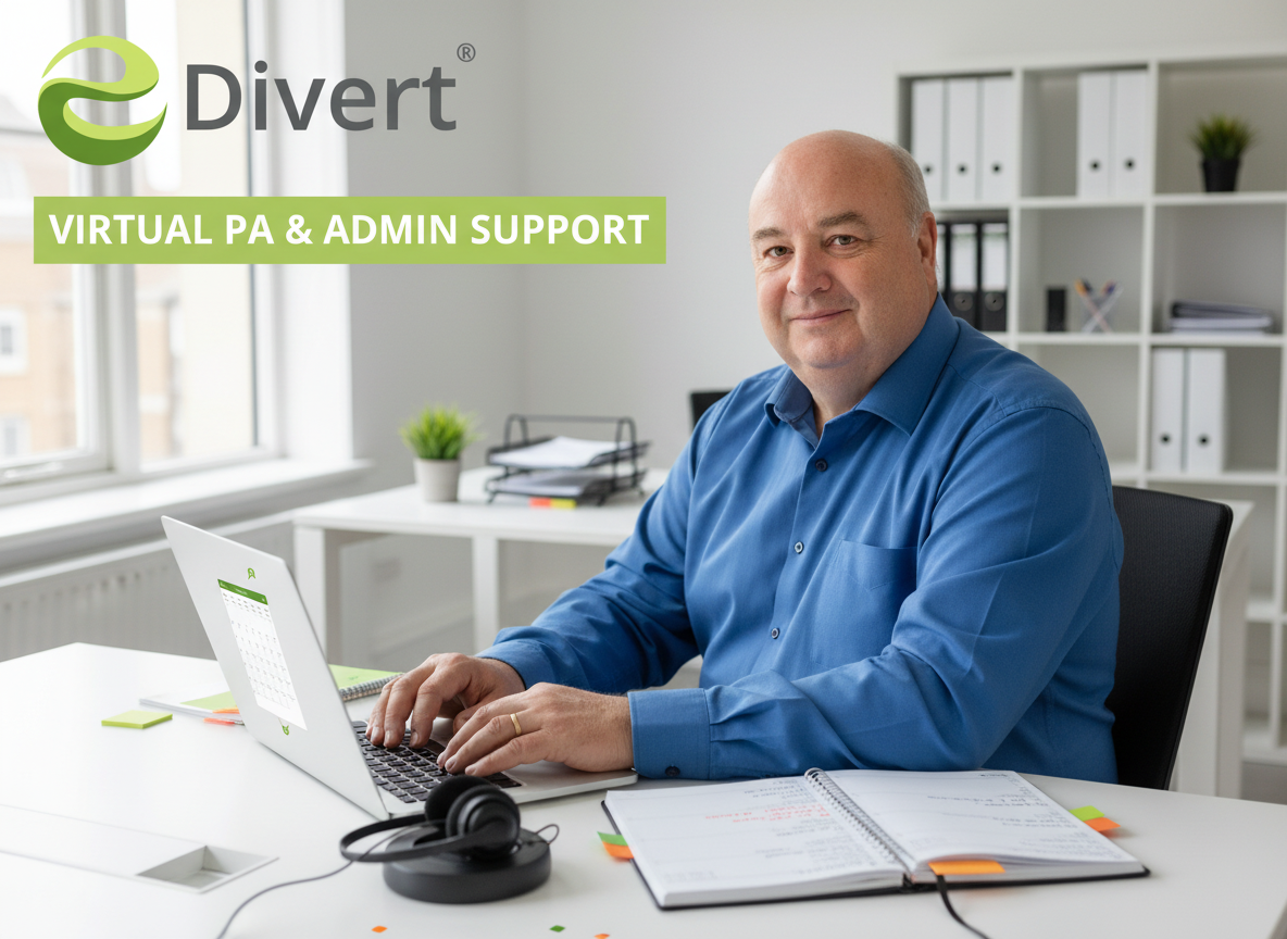 At eDivert we offer a full range of Virtual PA and admin support services. We employ a number of highly trained PAs, who can assist you with your weekly workload, diary management, bookings, presentations, spreadsheets and other administrative tasks. You will be allocated a personal PA who looks after your account.